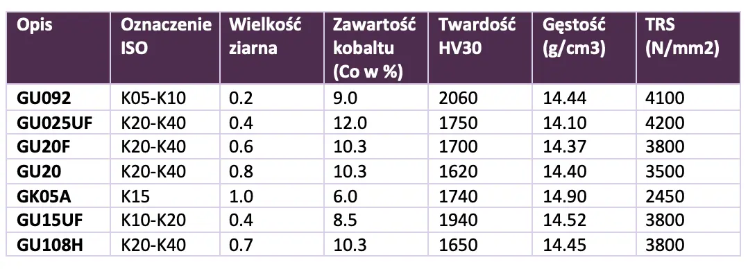 - Stałe długości prętów węglikowych od L=63mm i średnicy Ø6mm do L=154mm i średnicy Ø20mm.
